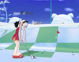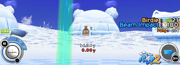 打球がビームに当ってそのまま吸い込まれて入るショット。距離に関係なくボーナスとして100PPもらえます。