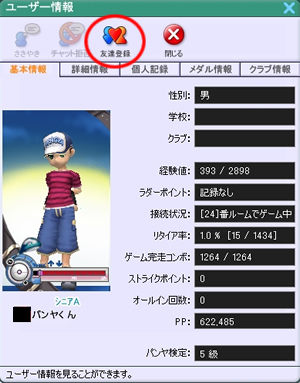 登録したいキャラを右クリックしてユーザー情報を表示させます。